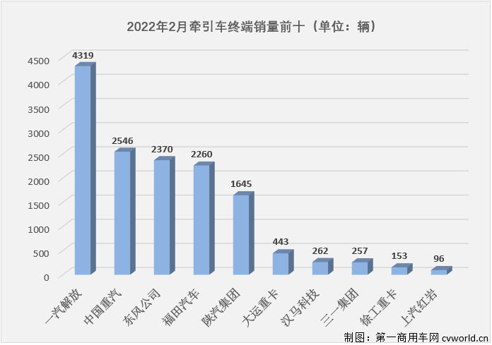 2022年2月份牽引車終端銷量一覽(單位:輛)